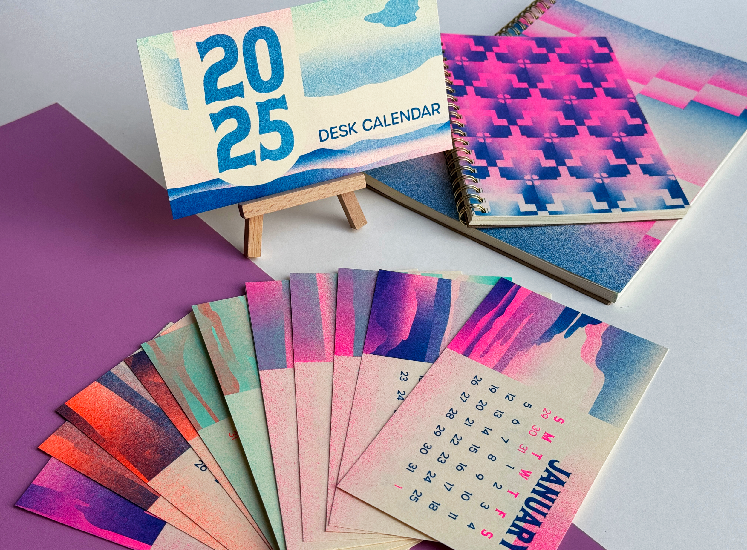 The first collection is rooted in New Mexico themes and iconography. Pulling inspiration from the landscape and architecture to generate patterns. All items in the collection are 100% risograph printed.