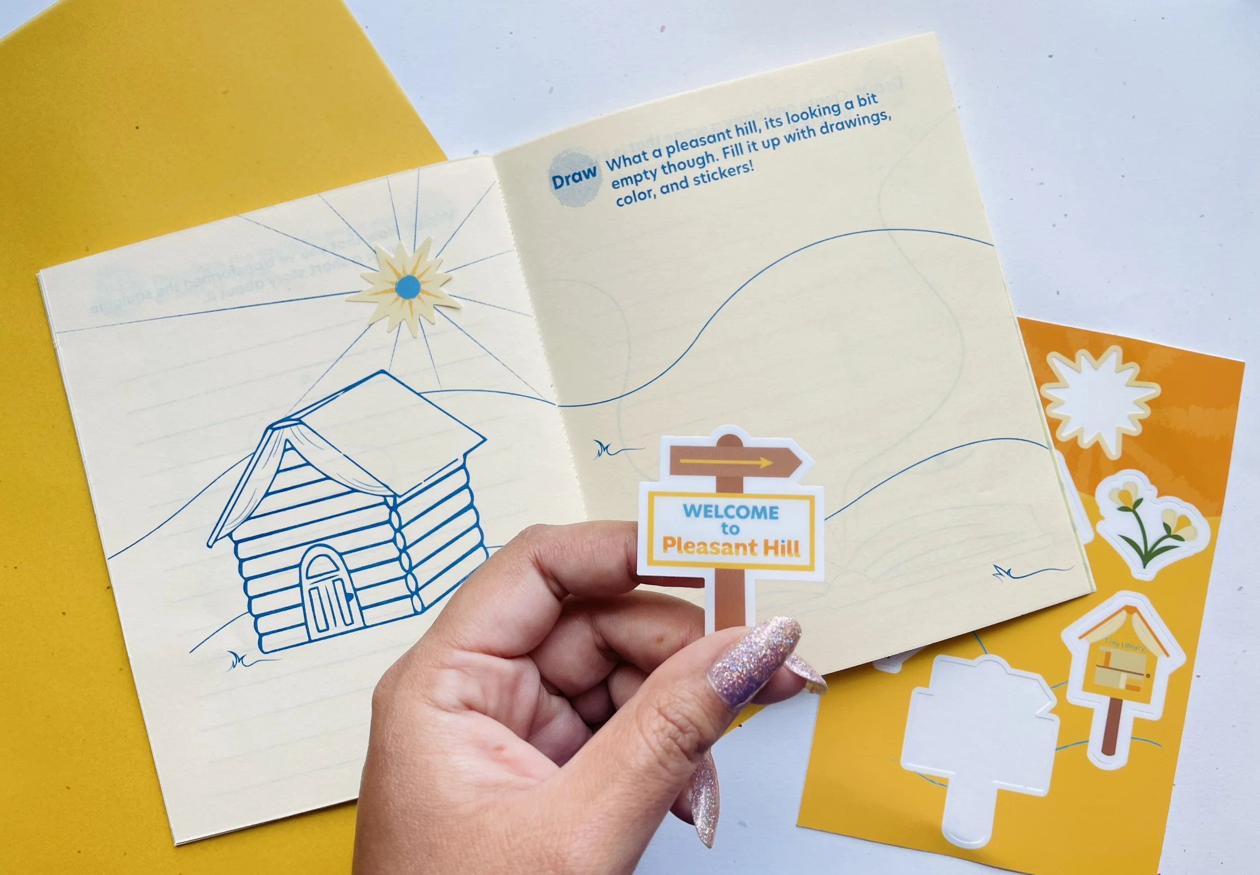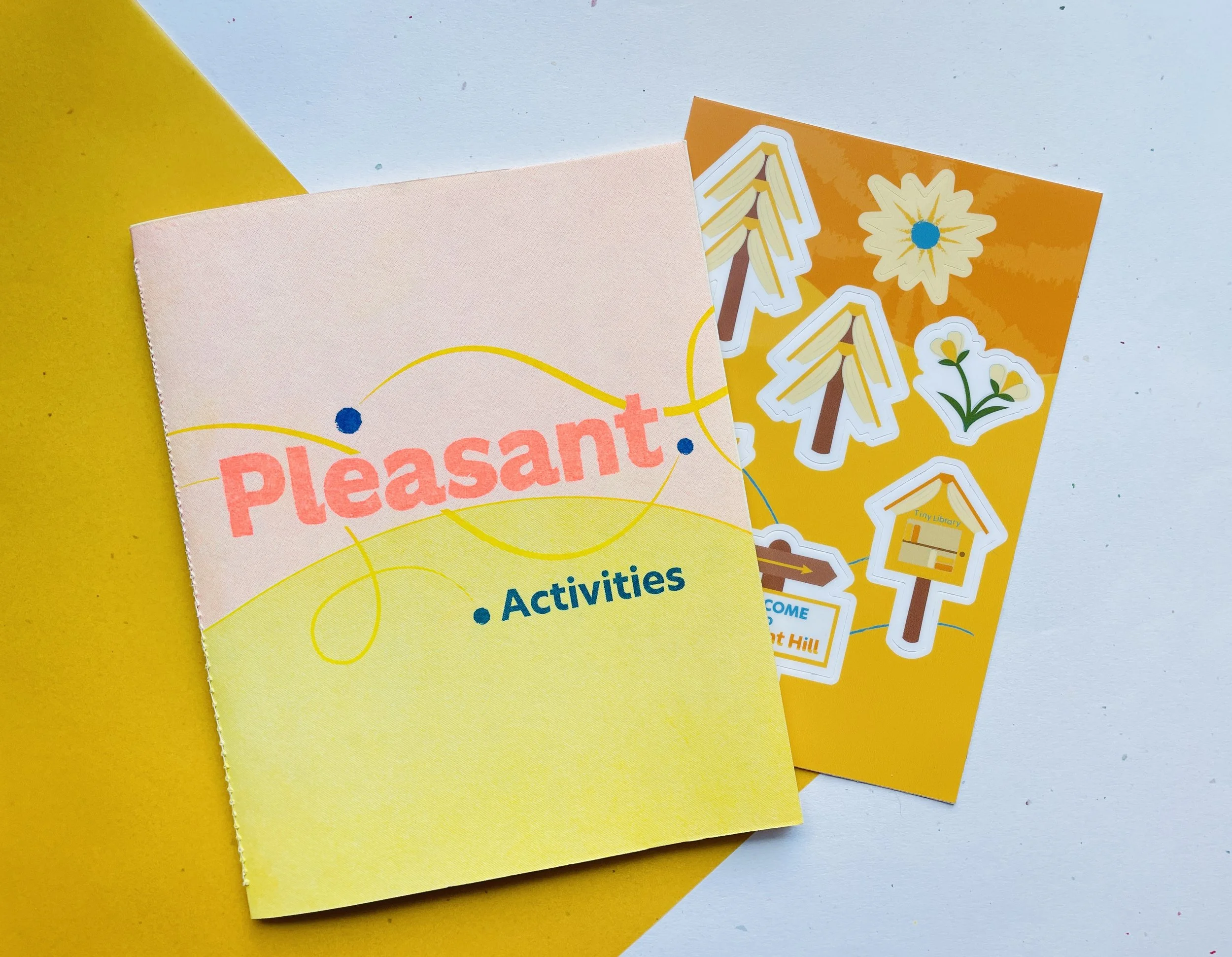Is an activity book that features coloring, drawing, and writing exercises. The book itself is fully risograph printed and comes with a sticker sheet that can be used throughout the book.