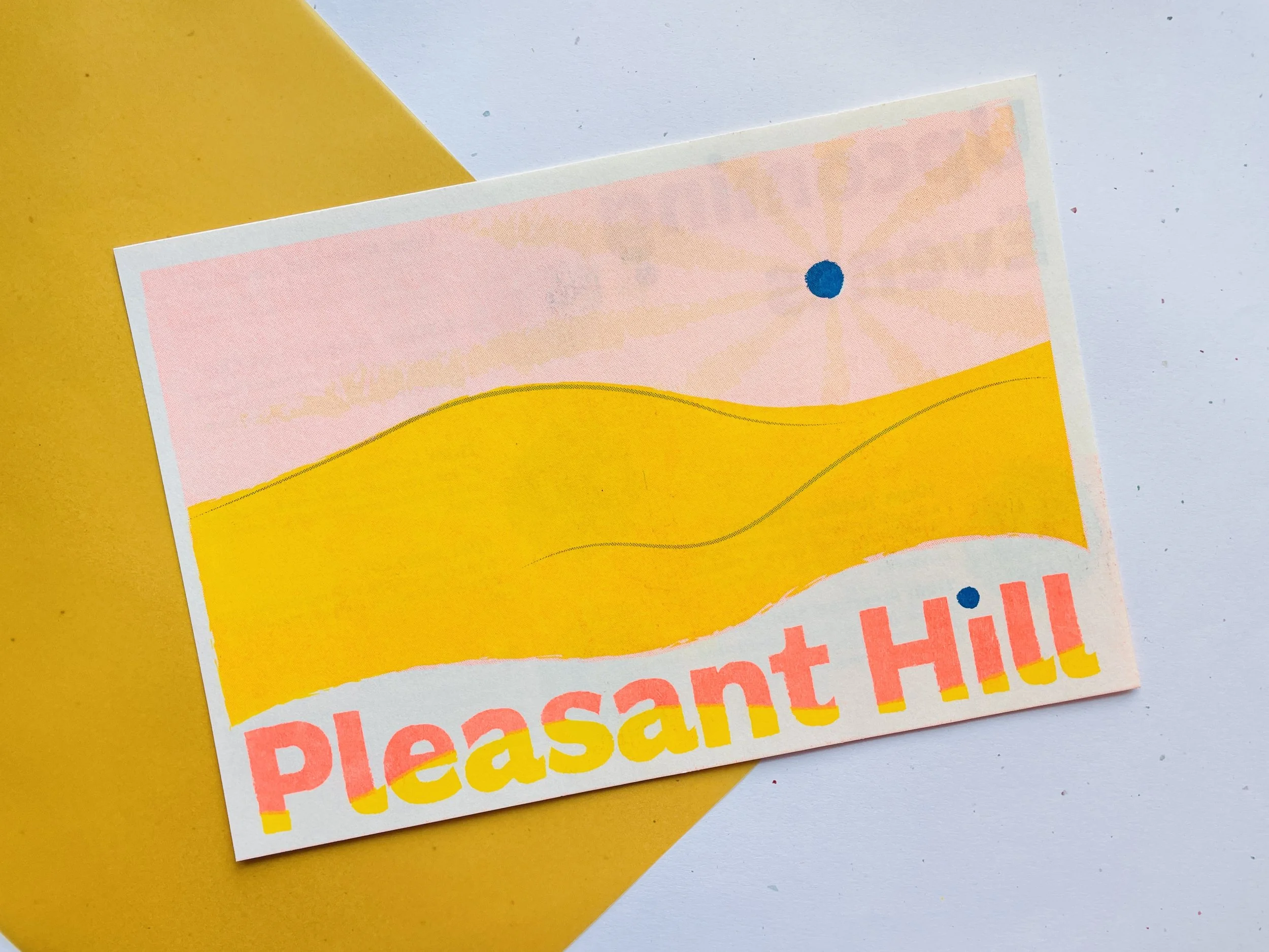 The pictorial logo features all of the elements seen in the word mark: color, the hill, and the dot. The pictorial logo is meant reinforce the visual elements present in the word mark. It also can be used in place of the word mark for social media, on T-shirts for library staff, or other deliverables.